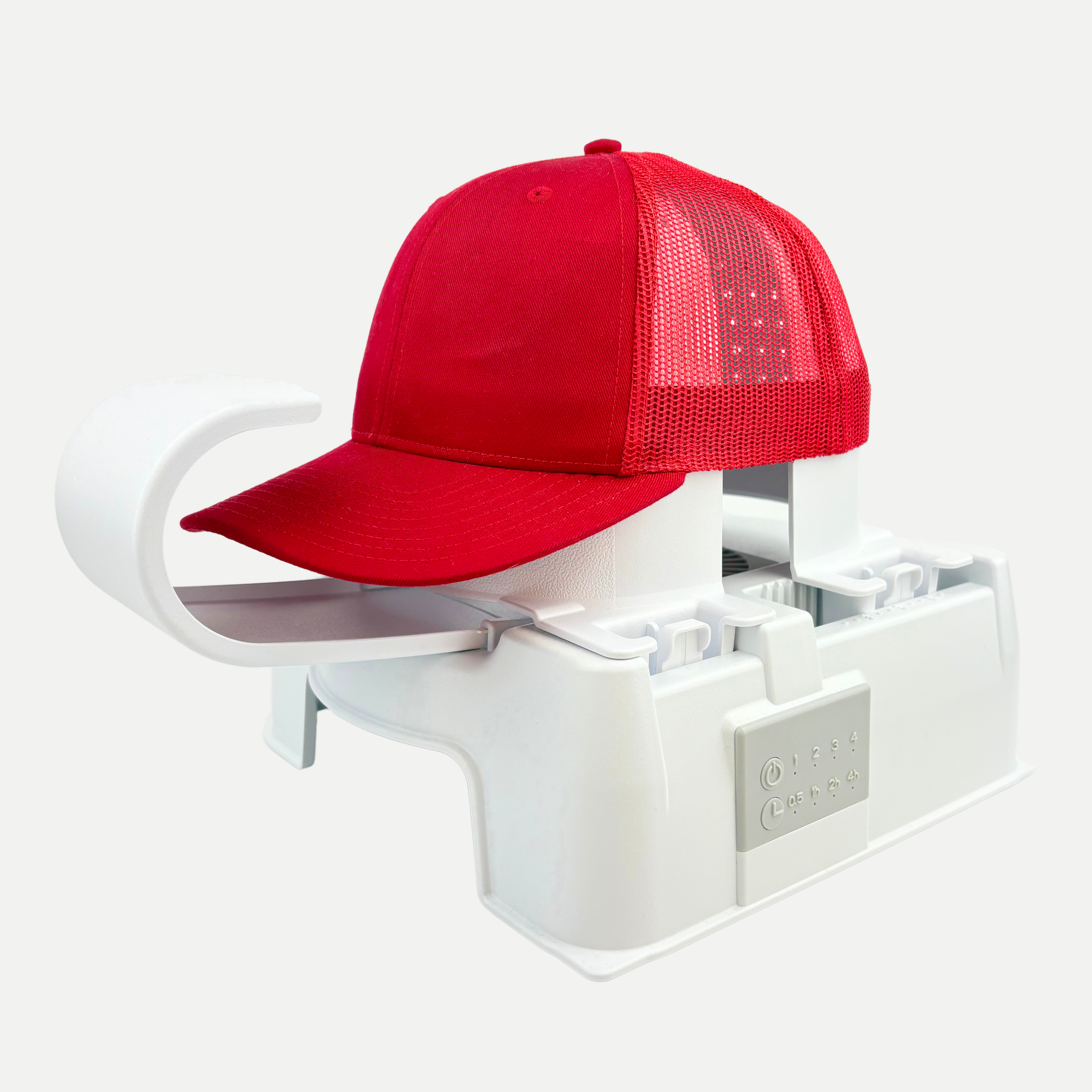 Adjust Hat Shaper to the size that your hat requires. Tightly fit your wrinkled hat onto Hat Shaper. Turn on the fan to the level you want and choose the amount of time you want it to dry.