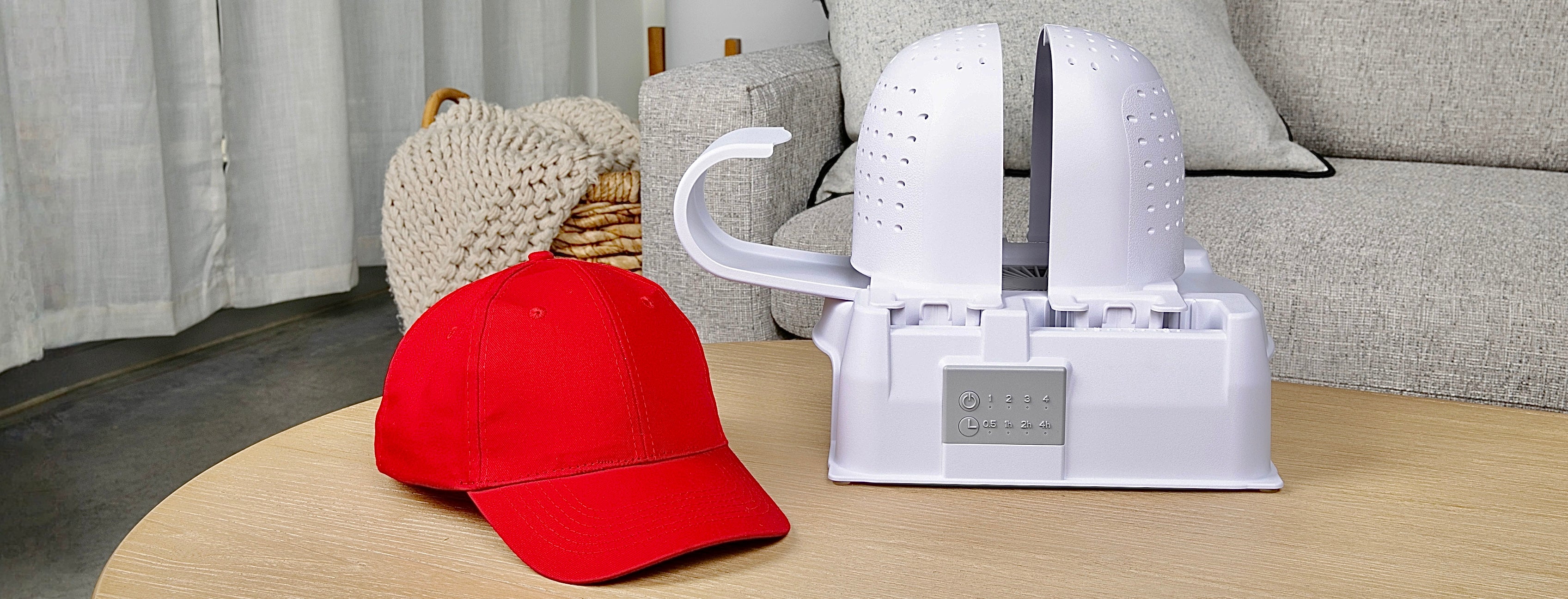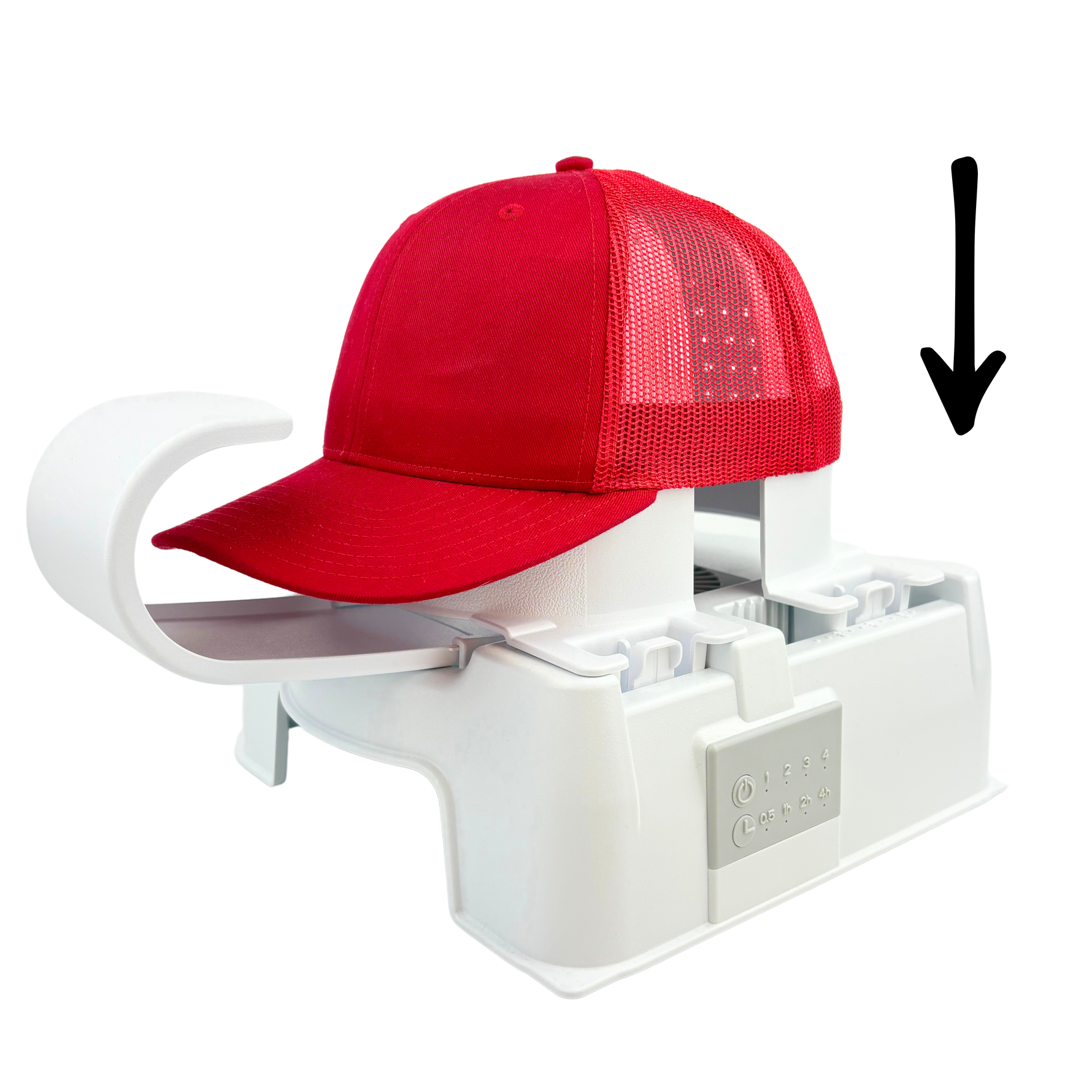 Adjust Hat Shaper to the size that your hat requires. Tightly fit your wrinkled hat onto your Hat Shaper. Set the fan to the level you prefer and choose the amount of time you want it to dry for